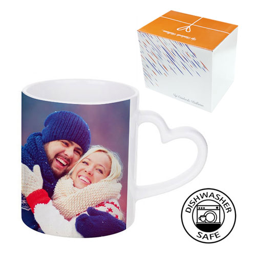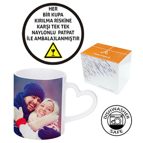 Sublimasyon Porselen Kalp Kulplu Beyaz Kupa
