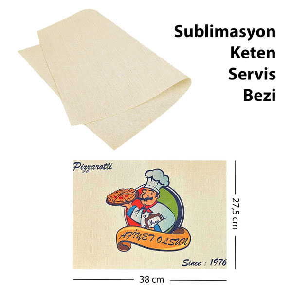 Sublimasyon ve lazer transfer baskıya uygun keten kumaştan üretilmiş servis bezidir.