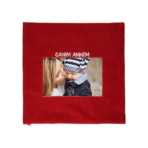 Sublimasyon baskıya uygun, "Canım Annem" logolu kadife malzemeden üretilmiş kırmızı renkte bir kare yastık kılıfıdır.