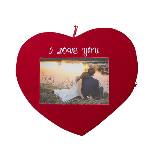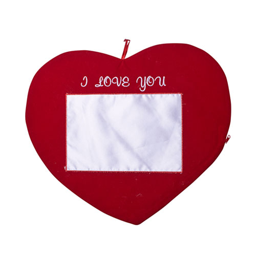 Sublimasyon baskıya uygun, ''I Love You'' nakışlı, kırmızı renkte, kalp şeklinde ve yatay baskı alanına sahip olan bir yastık kılıfıdır.