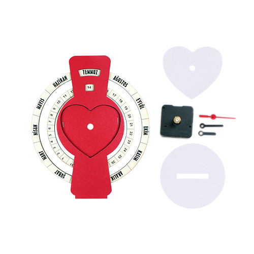 Ürün İçeriği: 1 adet saat mekanizması + 1 adet kalp şeklinde beyaz SUBLİMASYON BASKI METALİ + 1 adet sonsuz ahşap takvim