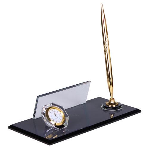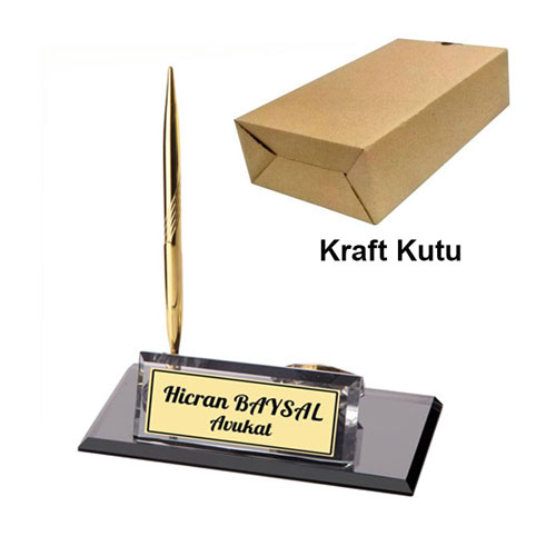 Ürün içeriği: 1 adet kristal masa isimliği + 1 adet altın kalem+ 1 adet altın baskı metali + 1 adet kraft kutu