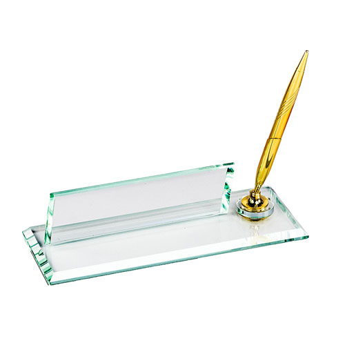 Ürün içeriği: 1 adet kristal masa isimliği + 1 adet altın renginde kalem + 1 adet altın baskı metali + 1 adet kraft kutu