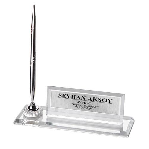 Ürün içeriği: 1 adet kristal masa isimliği + 1 adet gümüş baskı metali + 1 adet kalem + 1 adet kraft kutu