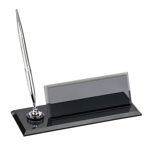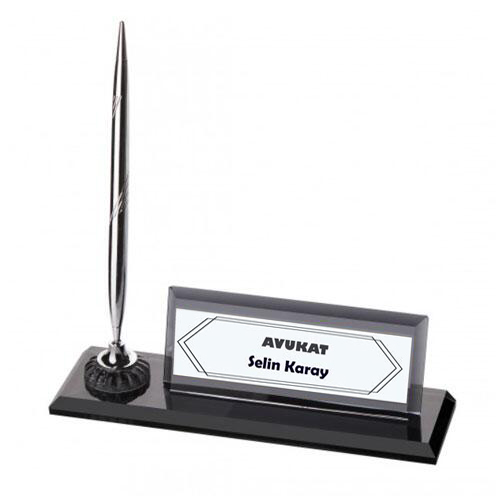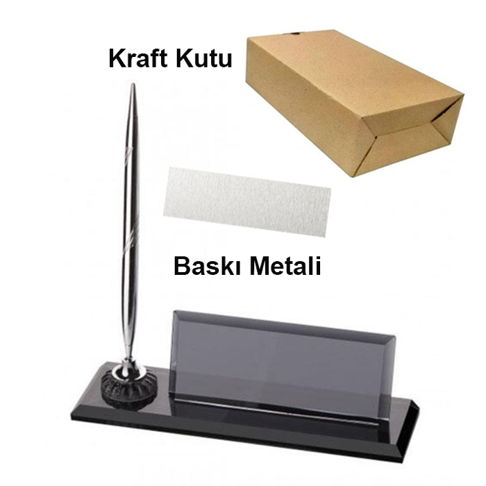 Ürün içeriği: 1 adet  kristal masa isimliği + 1 adet gümüş renk kalem + 1 adet gümüş baskı metali + 1 adet kraft kutu