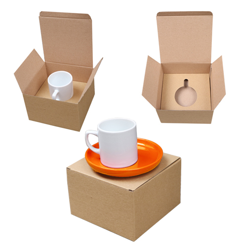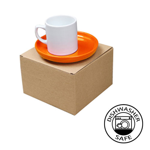 Ürün içeriği: 1 adet kahve fincanı + 1 adet turuncu tabak + 1 adet kraft kutu