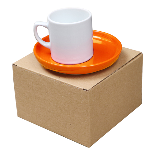 Sublimasyon Seramik Türk Kahve Fincanı - Turuncu Tabaklı