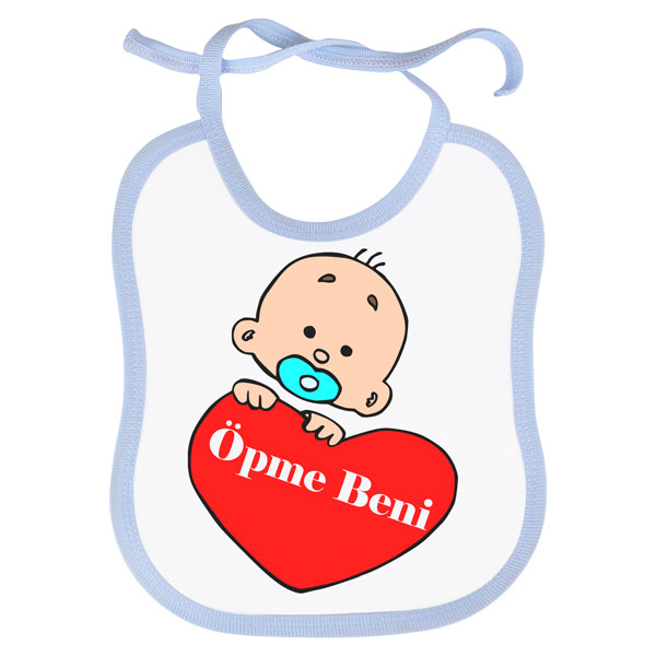 Sublimasyon ve lazer transfer baskıya uyumlu olarak üretilen mavi biyeli bir mama önlüğüdür. Mikropolyester ve pamuk karışımı özel bir malzemeden üretilmiştir.