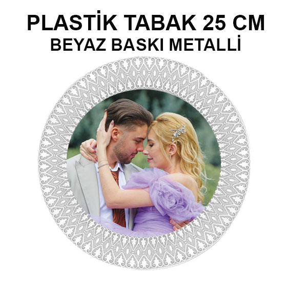 25 cm Plastik Tabak + 15,8 cm Sublimasyon Baskı Metal (Beyaz)