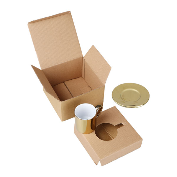 Sublimasyon Porselen Metalik Altın Kahve Fincanı - Kraft Kutulu