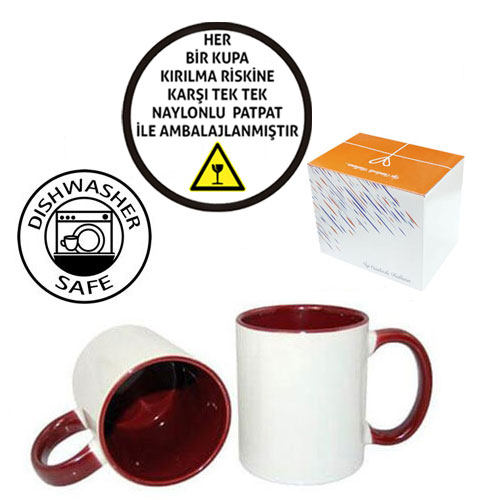 Sublimasyon Sapı ve İçi Bordo Porselen Kupa