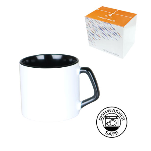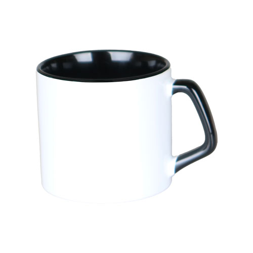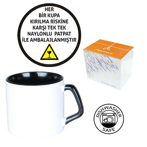 Sublimasyon ve lazer transfer baskıya uygun özel kaplamalı porselen sapı ve içi siyah mocha kupa modelidir.