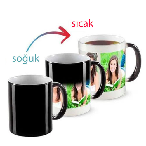 Renk değiştiren sihirli kupalar soğuk iken siyah görüntüsü olan ama içerisine sıcak sıvı konulduğunda rengi beyazlaşarak üzerindeki baskıyı gösteren ilginç bir üründür.