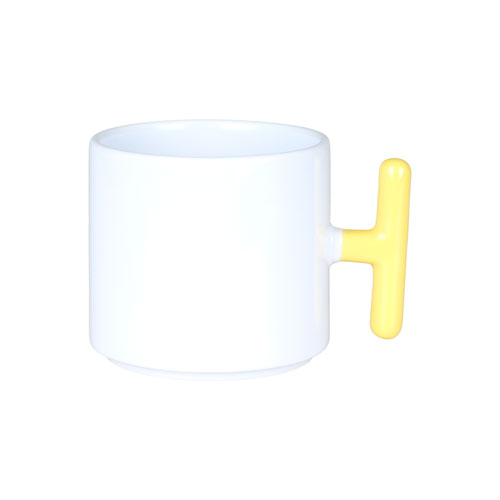 Sublimasyon ve lazer transfer baskıya uygun özel kaplamalı T sarı kulplu kupa modelidir.
