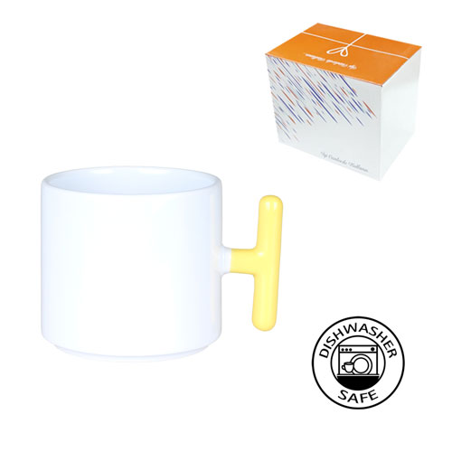Sublimasyon Porselen T Sarı Kulplu Kupa - Kutulu