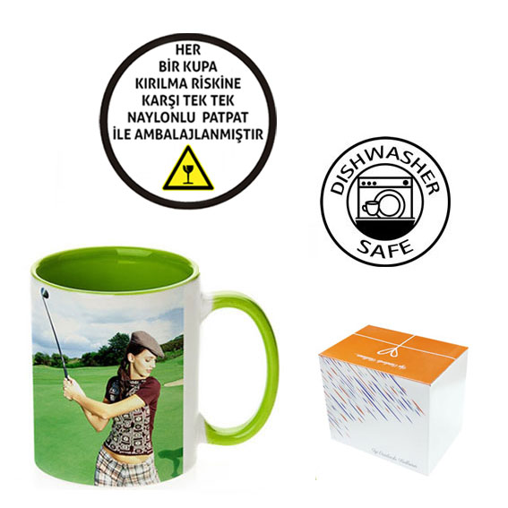Sublimasyon Sapı ve İçi Açık Yeşil Porselen Kupa