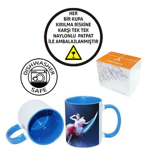 Sublimasyon Sapı ve İçi Mavi Porselen Kupa