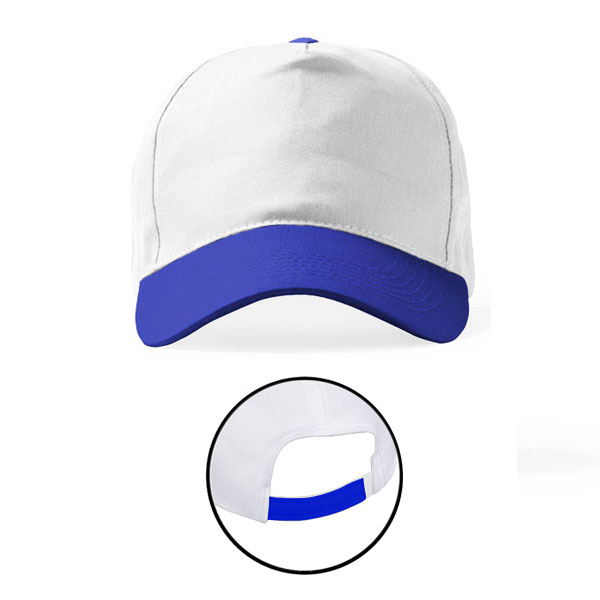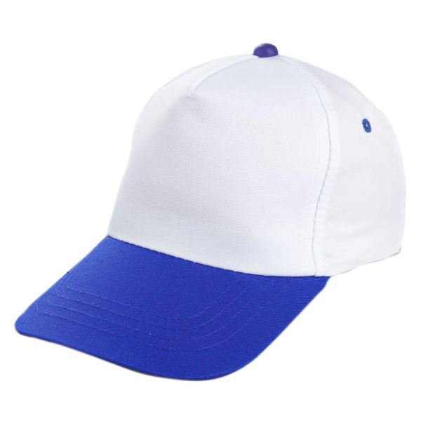 Saks Mavi Siperlikli Beyaz Polyester Şapka – Baskıya Uygun