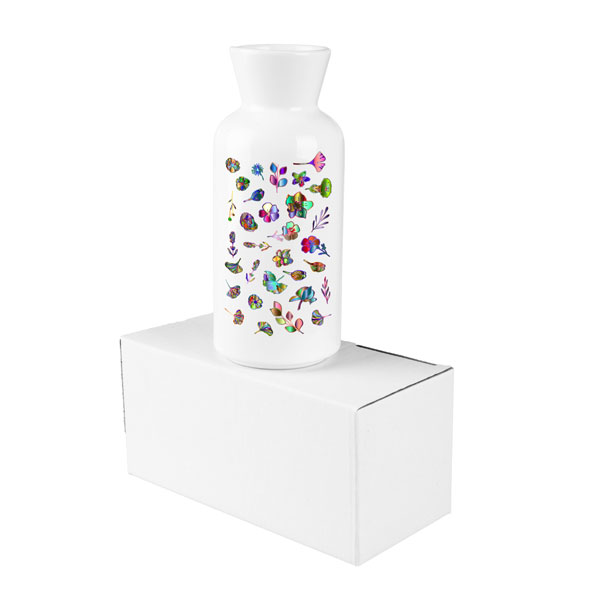 Sublimasyon baskıya uygun, üzeri özel kaplamalı seramik vazodur.