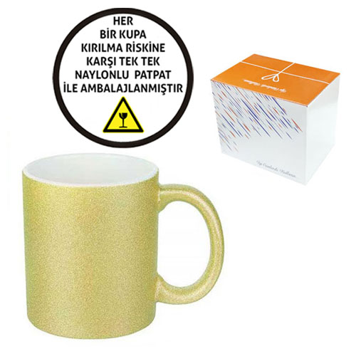 Sublimasyon Porselen Glitter (Simli) Altın Kupa