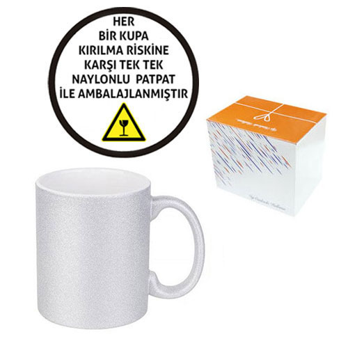Sublimasyon Porselen Glitter (Simli) Gümüş Kupa