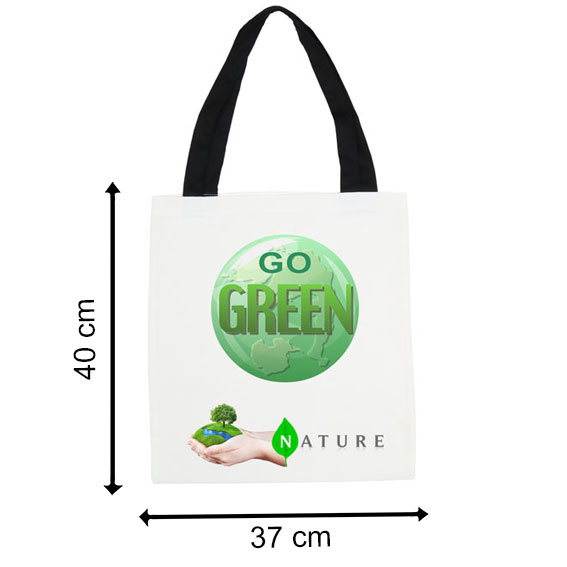 Sublimasyon Siyah Saplı Bez Krem Çanta - 1Sublimasyon Siyah Saplı Bez Krem Çanta - 2