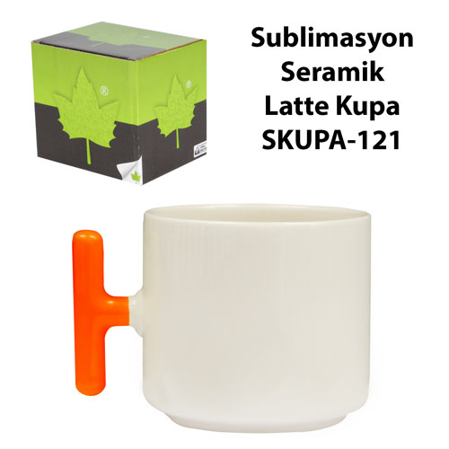 Sublimasyon Turuncu Kulplu Seramik Latte Kupa - Kutulu