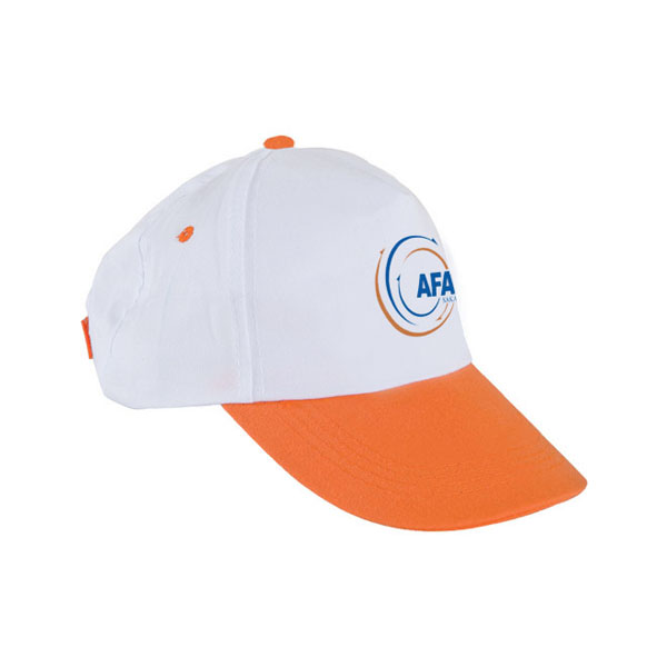 Turuncu Siperlikli Beyaz Polyester Şapka – Baskıya Uygun