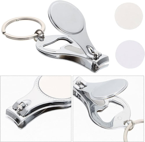 Ürün içeriği: 1 adet metal tırnak makası anahtarlık + 1 adet 2.5 x 2.5 cm ebadında beyaz baskı metaliÜrün Ebadı: 9 x 3 cm