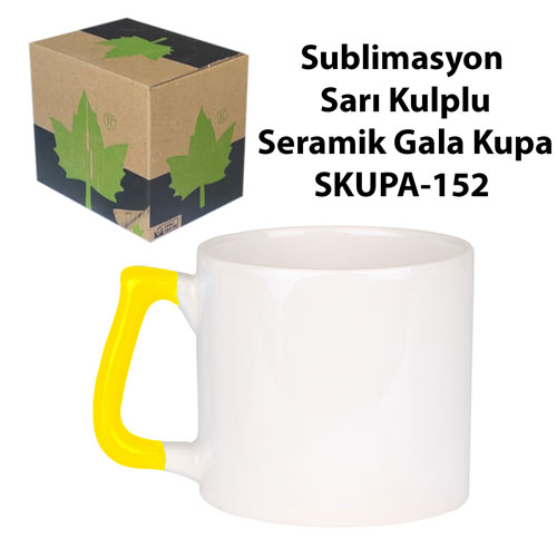Sublimasyon Sarı Kulplu Seramik Gala Kupa - Kutulu